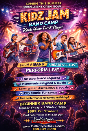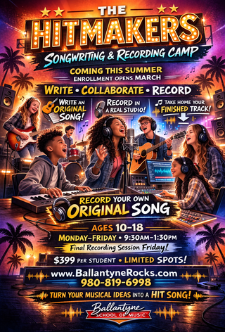 Our R&B Bootcamps, Songwriting/Recording, Music Production and Kidz Jam Band Camps have always been fun and popular ways to encourage and develop creative self expression at Ballantyne School of Music!